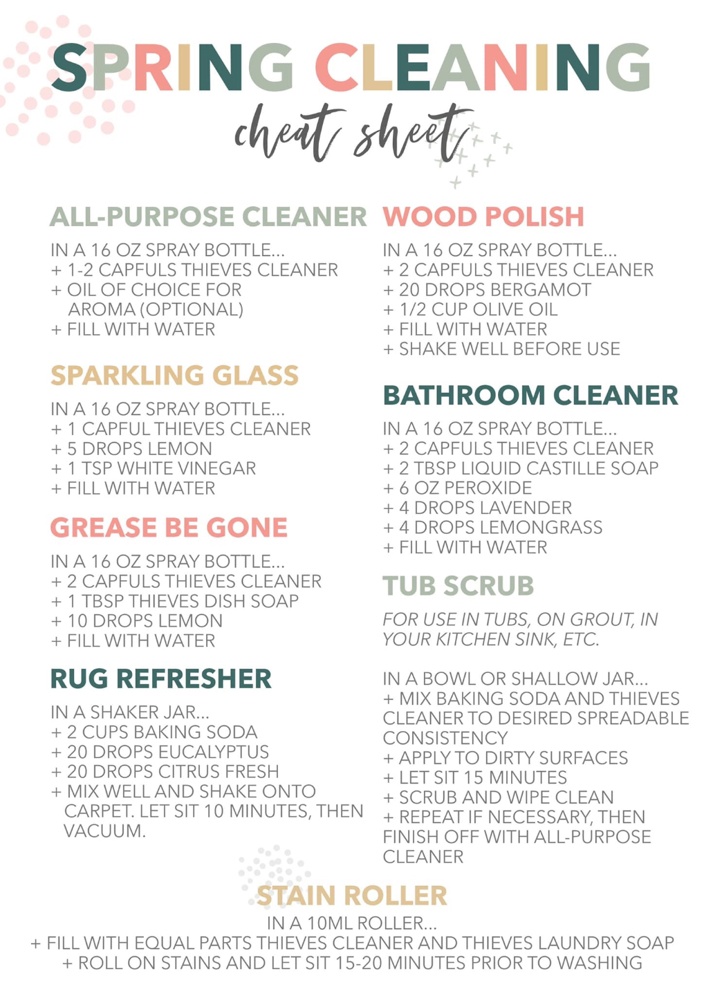 Attached you'll find a quick checklist to get started cleaning with your Thieves Home cleaner⬇️